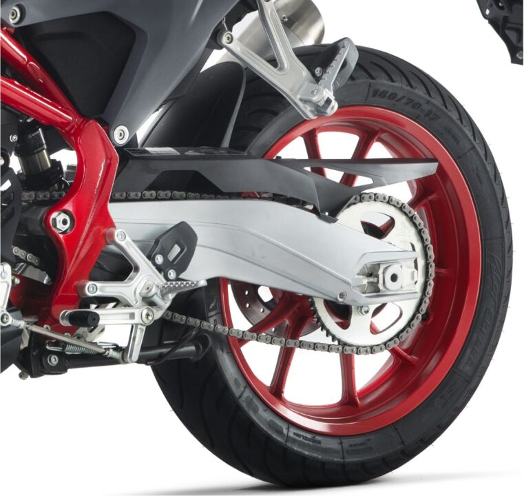 Oι τροχοί από κράμα αλουμινίου είναι 17 ιντσών και έρχονται με ελαστικά Michelin Pilot Street διαστάσεων 110/70 μπροστά και 140/70 πίσω.