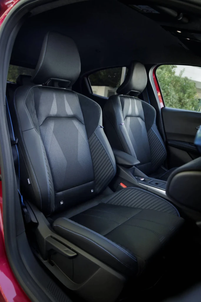Το ταμπλό διαθέτει μία διπλή οθόνη σχήματος V 10,1 ιντσών (ανάλογα την έκδοση), με την κεντρική οθόνη να είναι προσανατολισμένη προς τον οδηγό. Το μικρής διαμέτρου τιμόνι προέρχεται από μοντέλα μεγαλύτερης κατηγορίας, ενώ ο αριθμός των στροφών από τέρμα σε τέρμα έχει μειωθεί σε 2,6 (από 3,3), γεγονός που εξασφαλίζει στον οδηγό μια πιο σπορτίφ εμπειρία οδήγησης. Το τιμόνι ενσωματώνει, επίσης, το πλήκτρο Multi-Sense που παρέχει στον οδηγό τη δυνατότητα επιλογής προγραμμάτων οδήγησης. Το καινούργιο design των καθισμάτων χρησιμοποιεί ανακυκλωμένα υλικά, επενδύσεις με νέο μοτίβο και έγχρωμες εμφανείς ραφές (ανάλογα με την έκδοση), συμβάλλοντας στη δημιουργία μιας σύγχρονης εικόνας.