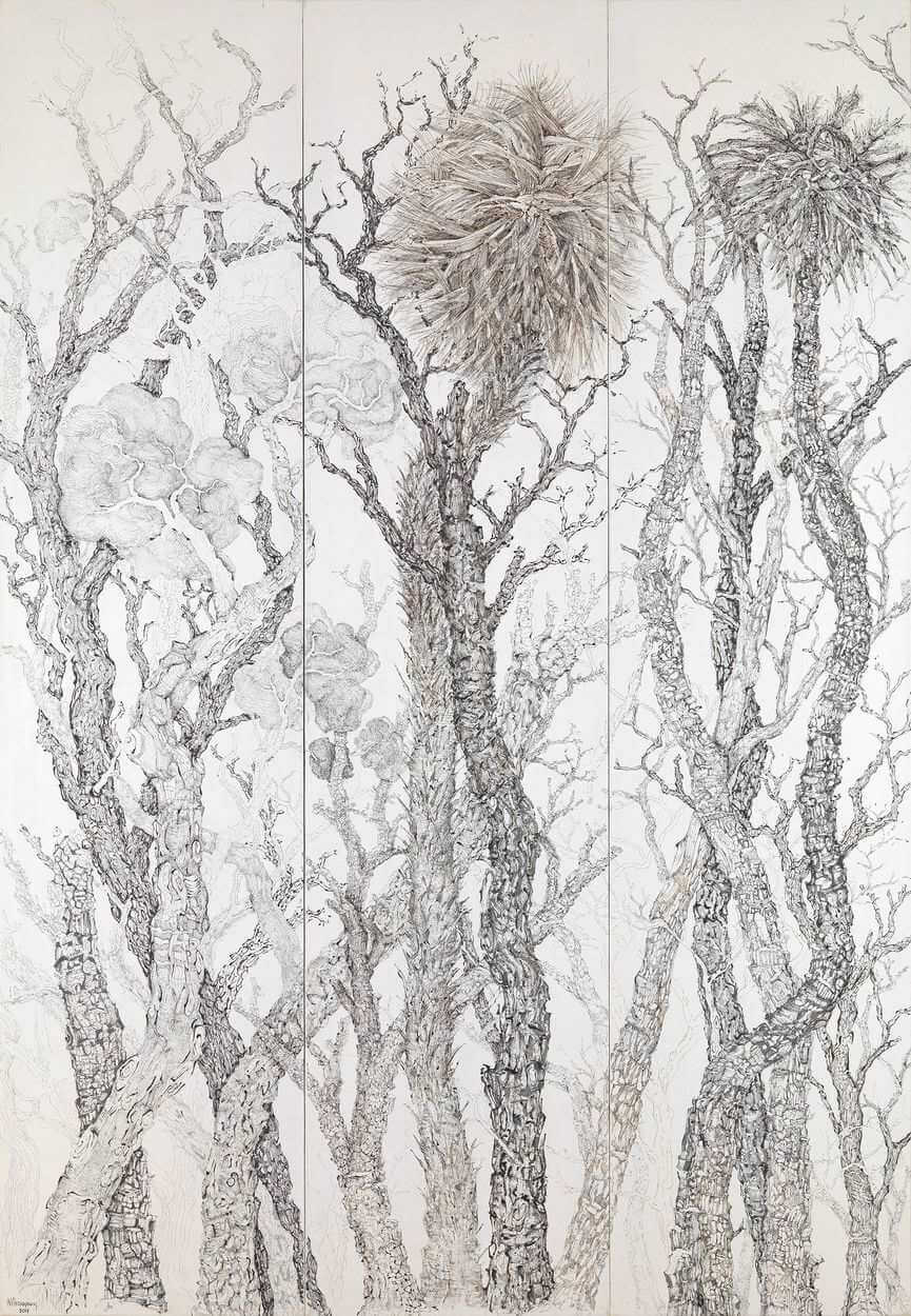 Η Ντένη Θεοχαράκη συμμετέχει με την προσωπική της, διακριτή, ανάγλυφη γραφή. Ασυμβίβαστη και περιπετειώδης, αναζητεί διαρκώς νέους τρόπους έκφρασης με διαφορετικά υλικά, υφές και τεχνικές.