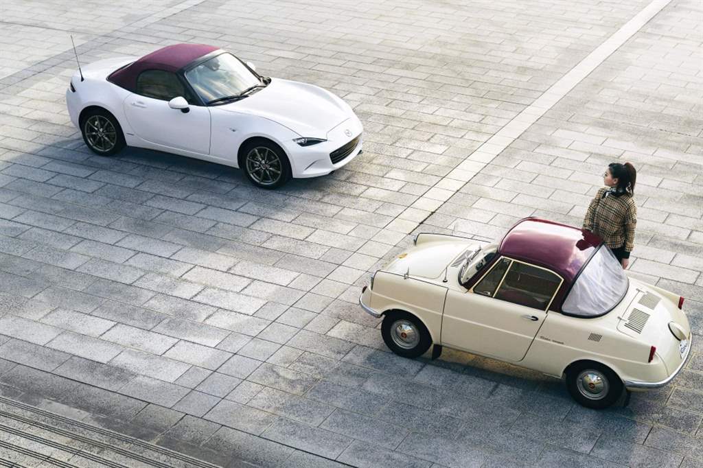 Ξεκίνησε το 1960 με το Mazda R360 ήταν το πρώτο αυτοκίνητο παραγωγής της εταιρείας, αυτό το κομψό coupe micro-car αποδείχθηκε μια τεράστια επιτυχία στις πωλήσεις και η σχεδίαση των δύο άκρων σε λευκό σώμα / κόκκινη οροφή των υψηλής ποιότητας εκδόσεων έχει 60 χρόνια αργότερα εμπνεύσει εξωτερικό συνδυασμό εσωτερικών χρωμάτων των μοντέλων της 100ης επετείου της Mazda.