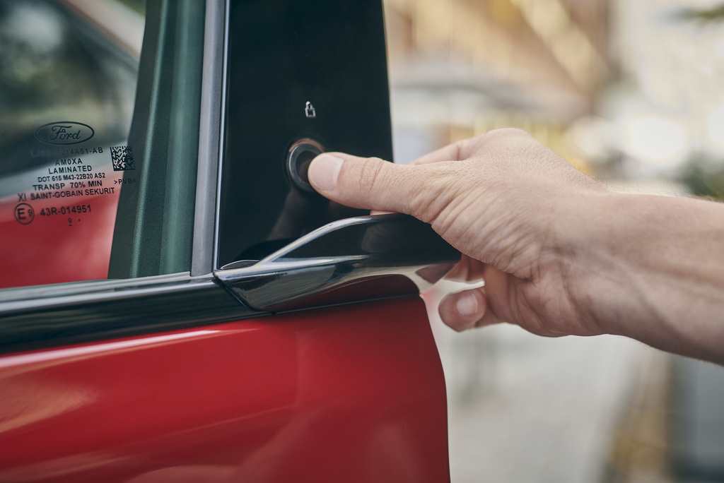 Αρχικά να πούμε ότι υπάρχουν τρεις τρόποι για να ξεκλειδώσεις το αυτοκίνητο. Ο βασικός τρόπος είναι η αναγνώριση του (συνδεδεμένου) κινητού τηλεφώνου μόλις πλησιάσει ο ιδιοκτήτης το όχημα, ο δεύτερος είναι με πληκτρολόγηση κωδικού στην κολόνα της πόρτας ενώ για κάθε ενδεχόμενο ξεκλειδώνει και με το ας πούμε παραδοσιακό κλειδί του. Στις πόρτες πάντως αντί για χερούλια υπάρχει ένα κουμπάκι που θυμίζει το κουδούνι του σπιτιού! (ΣΥΣΤΗΜΑ ‘E-LATCH’)