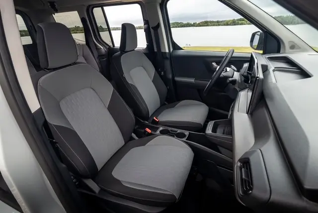 Τα καθίσματα του E‑Tourneo Courier είναι υπερυψωμένα σε σχέση με αυτά ενός συνηθισμένου αυτοκινήτου, προσφέροντας εξαιρετική ορατότητα. Η ψηλή οροφή, σε συνδυασμό με τα μεγάλα παράθυρα, εξασφαλίζουν άφθονο χώρο για το κεφάλι και φυσικό φως.