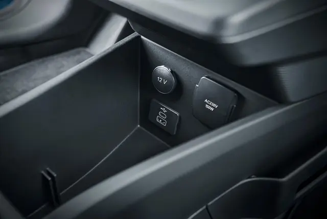 Πολλές φορές το αυτοκίνητο μπορεί να επιτελέσει ρόλο προσωρινού γραφείου, τραπεζαρίας ή και playroom. Η πρακτική κεντρική κονσόλα του E-Tourneo Courier επιτρέπει στους πελάτες να οργανώνουν τον αποθηκευτικό χώρο για όλα όσα χρειάζονται – από laptop, μπουκάλια νερού και σνακ έως κλειδιά και μαντηλάκια.