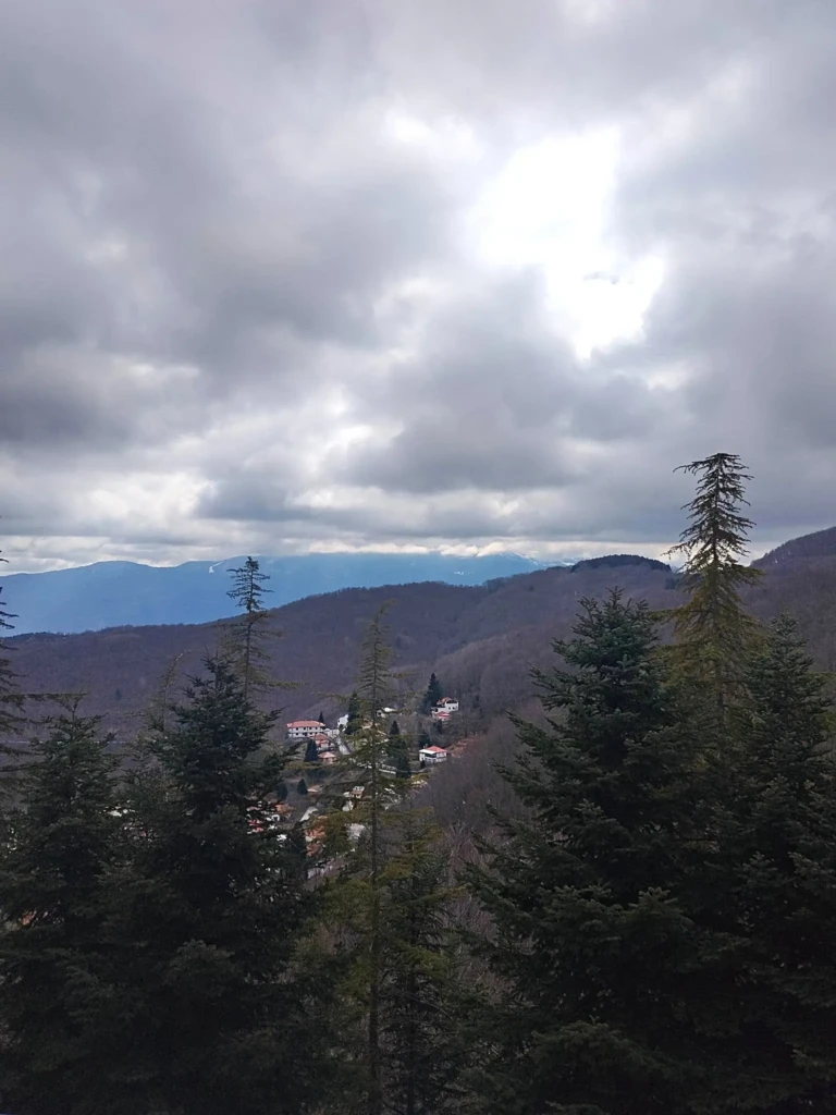 Ανεβαίνοντας το Βέρμιο, η σύντομη λιακάδα έδωσε τη θέση της σε πυκνά, σχεδόν απειλητικά για βροχή σύννεφα.