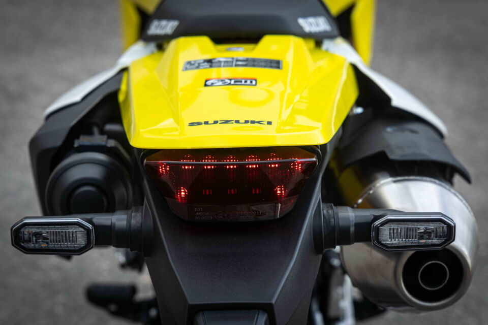 Suzuki Τraction Control System (STCS): Διαθέτει δύο διαβαθμίσεις και μπορεί να απενεργοποιηθεί πλήρως. Αυτές τα δύο mode είναι διαφορετικά ρυθμισμένα ανάλογα με την έκδοση. Αμφότερα διαθέτουν και τη ρύθμιση G (Gravel), που πρωτογνωρίσαμε στo V-Strom 800DE https://www.gazzetta.gr/gmotion/2363164/suzuki-v-strom-800-800de-i-sosti-syntagi και η οποία προσαρμόζει τη λειτουργία του STCS σε γλιστερές ή/και χωμάτινες επιφάνειες, επιτρέποντας το ιδανικό ποσό ολίσθησης στον πίσω τροχό κατά τη διάρκεια της απότομης επιτάχυνσης.