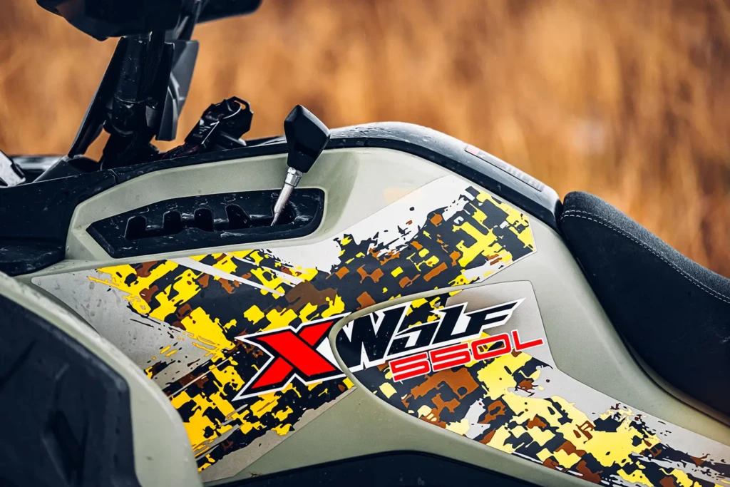 Κατασκευασμένο και σχεδιασμένο για τη μέγιστη απόδοση, το XWolf 550L είναι ένα ισχυρό όχημα παντός εδάφους για λάτρεις της περιπέτειας και επαγγελματίες που απαιτούν το καλύτερο. Πλήρως εξοπλισμένο, με προηγμένη εργονομία και ένα τολμηρό, στιβαρό σχεδιασμό, ανεβάζει την απόδοση στο επόμενο επίπεδο. Με δυνατό υγρόψυκτο κινητήρα 500cc, σύστημα ηλεκτρονικού ψεκασμού Bosch EFI, αυτόματο κιβώτιο ταχυτήτων CVT και επιλεκτική τετρακίνηση, είναι το ATV που θα κάνει ότι του ζητήσουμε αδιαμαρτύρητα, με ασφάλεια και κορυφαία απόκριση σε κάθε εντολή του οδηγού. Το Xwolf 550L μπορεί εύκολα να διασχίσει κάθε είδους έδαφος, αψηφώντας λάσπες, πέτρες, κροκάλα, άμμο, χαλίκια και ολισθηρά οδοστρώματα. Η μετάδοση διαθέτει κατ’ επιλογή κίνηση 4×4 ή 4×2, παράλληλα με ύπαρξη όπισθεν και δυνατότητα επιλογής Hi-Low (μακριές/κοντές σχέσεις), με το μπροστινό διαφορικό να κλειδώνει ηλεκτρονικά.